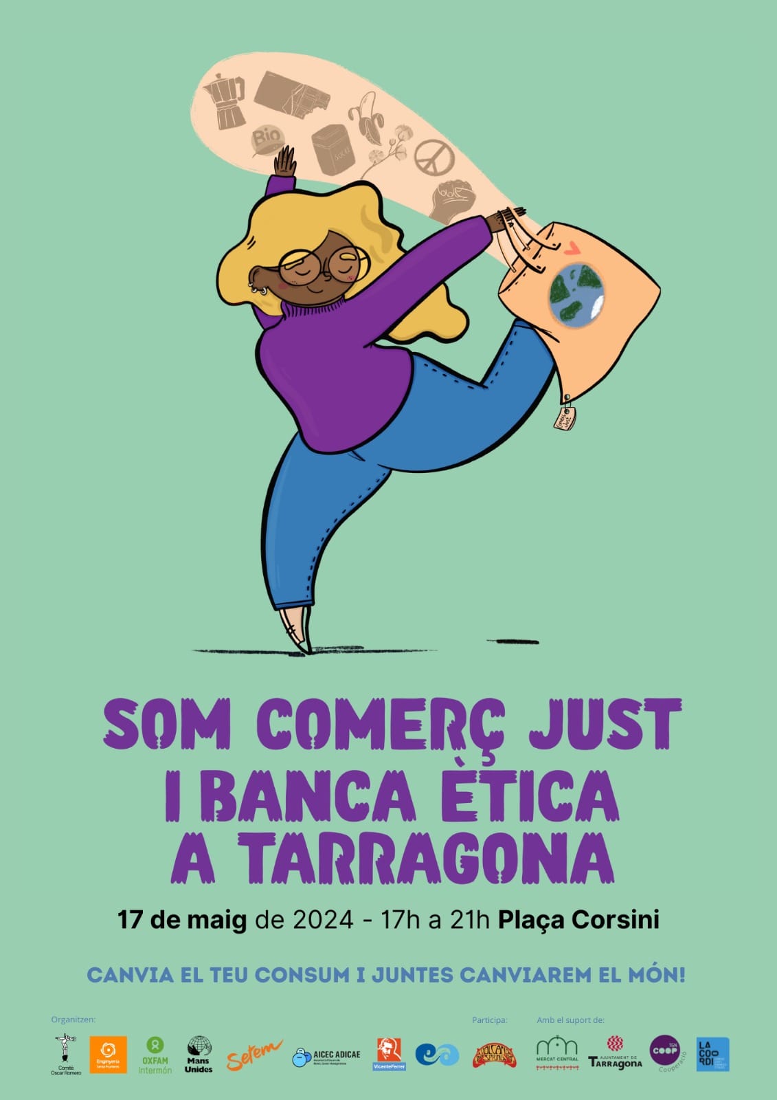 La Festa del Comerç Just i la Banca Ètica és la festa del consum responsable, crític què es pregunta d’on ve allò que mengem, la roba que vestim, si ha estat produït sense explotació infantil, sense discriminació de gènere amb salaris dignes i amb total respecte per el medi ambient i que aposta per una Banca que bo dediqui els nostres estalvis a la indústria del armament, que reivindica millores socials i no augmentar pressupostos militars. Donem-li una oportunitat a la Pau.