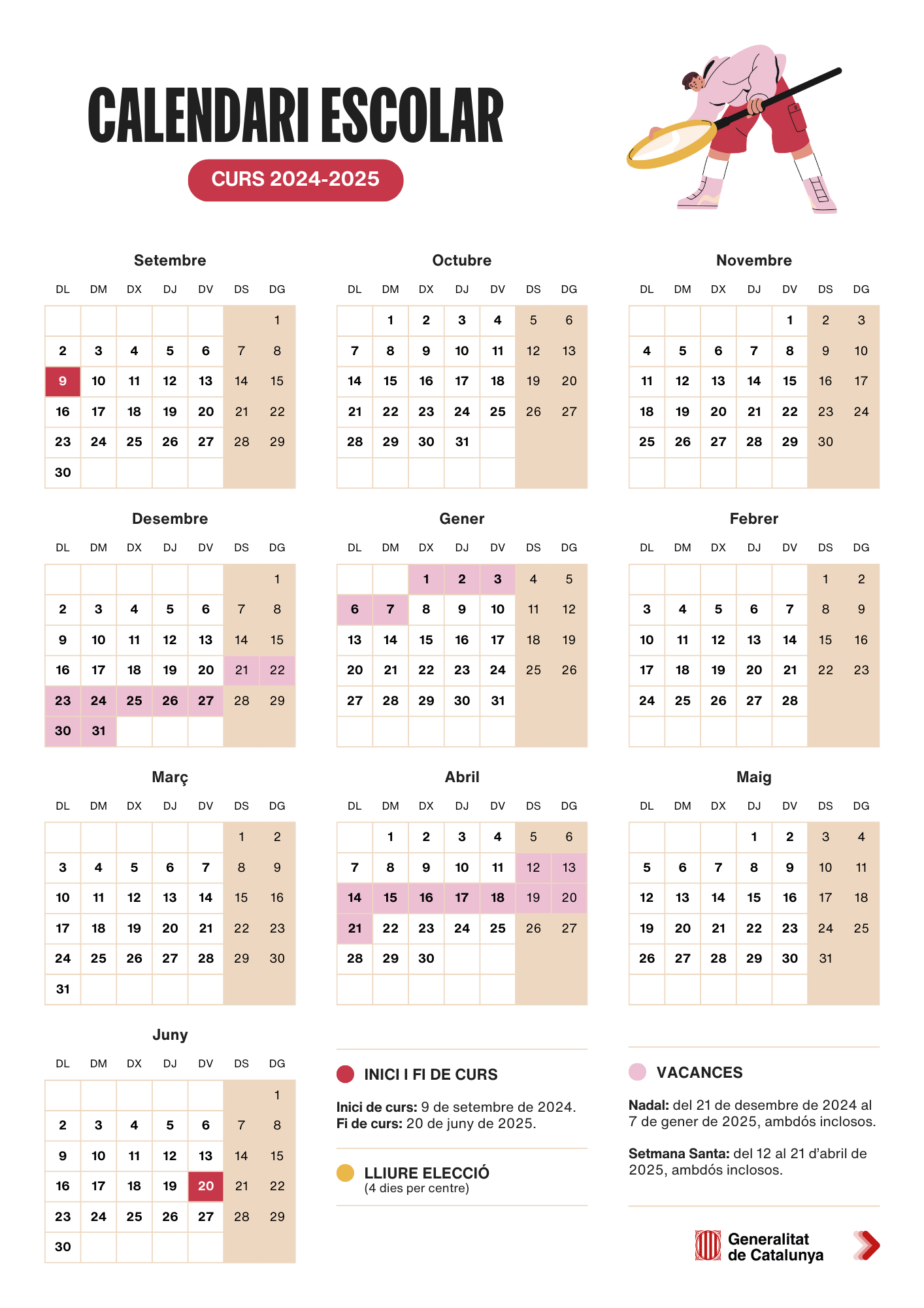 El Departament d’Educació fixa el calendari escolar per als ensenyaments obligatoris i postobligatoris pel curs 2024-2025.