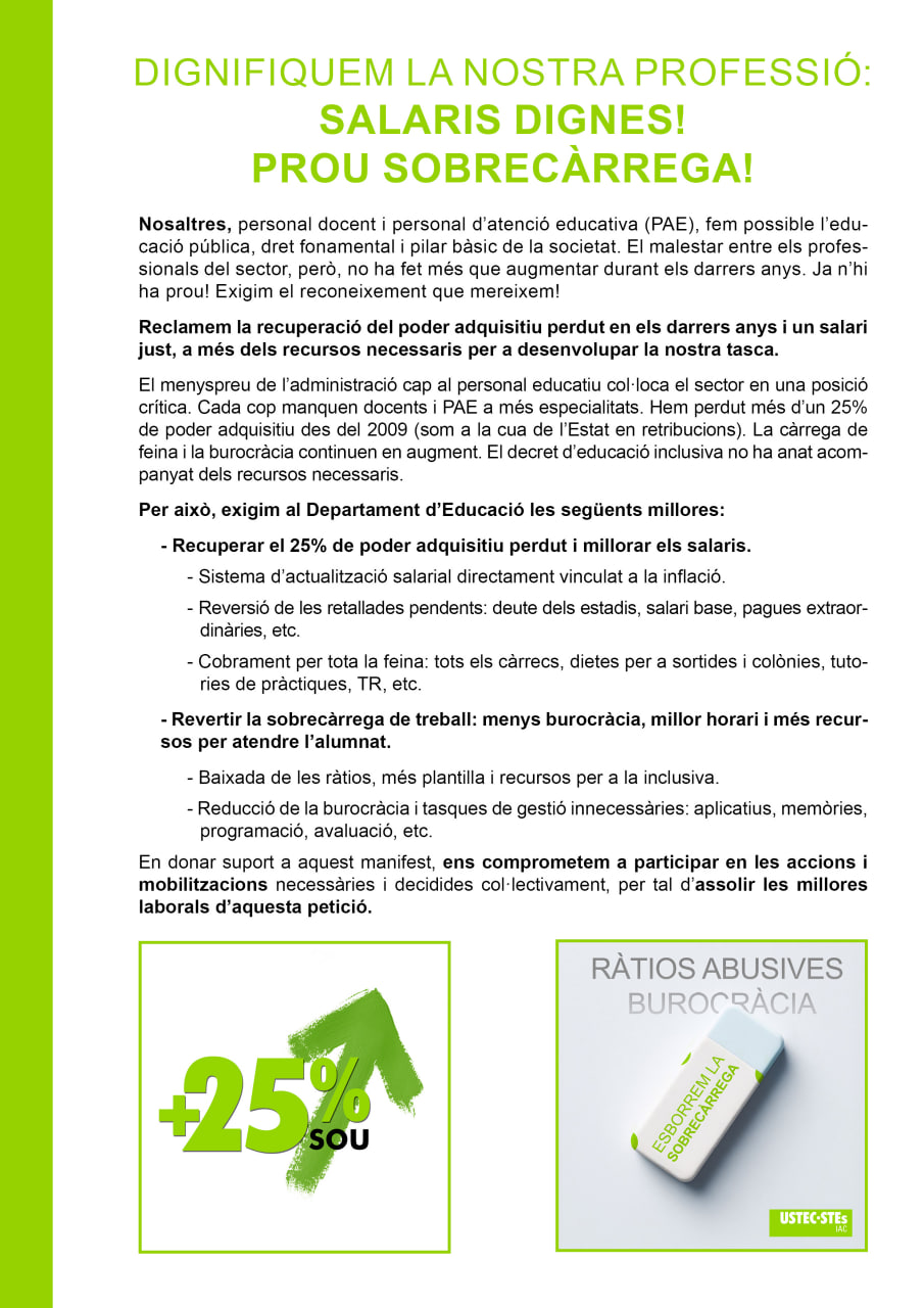 Amb el manifest “Dignifiquem la nostra professió: salaris dignes, prou sobrecàrrega!”, reclamem: