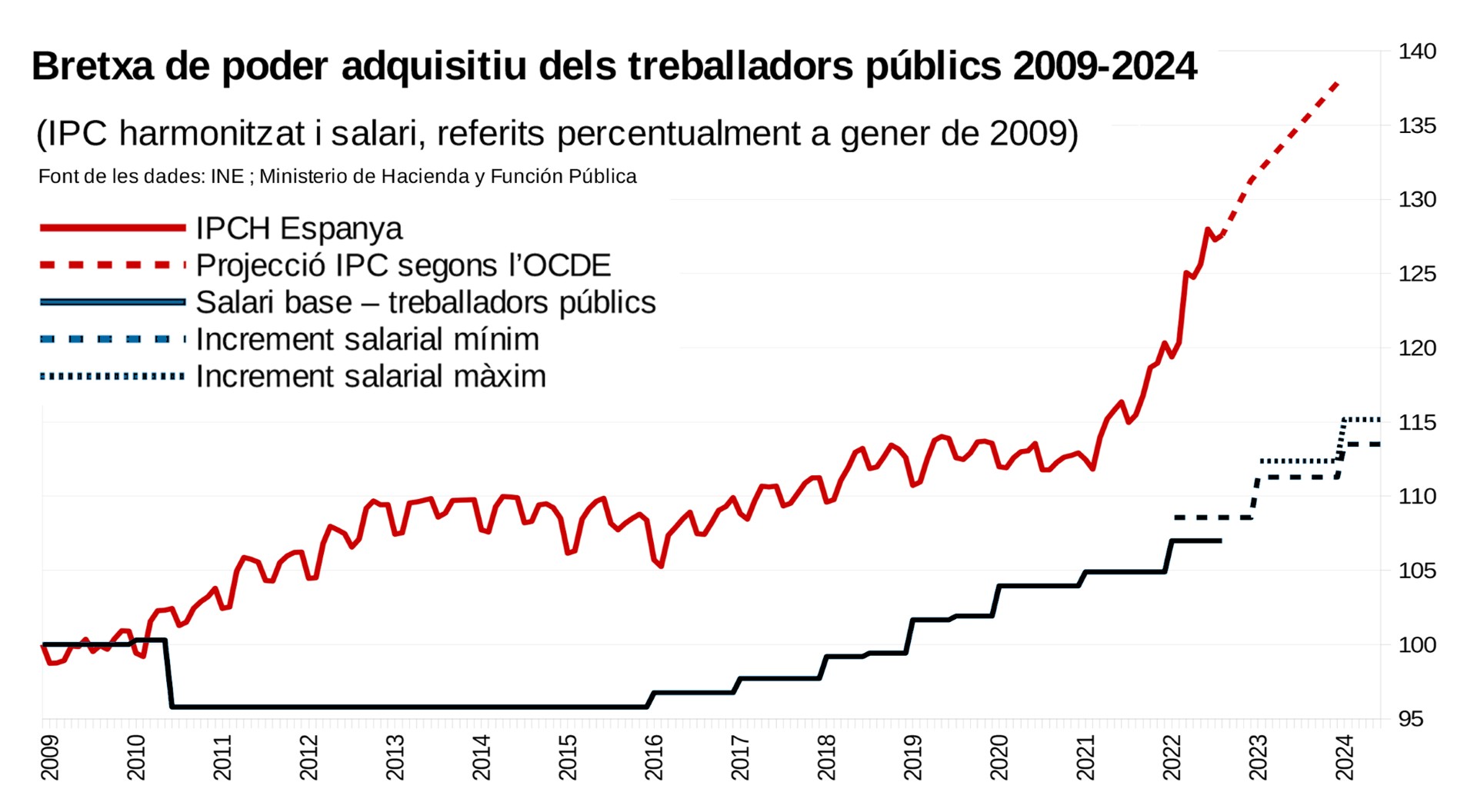 L’any 2022, el Govern espanyol ja va signar un acord d’increment salarial del 9,26%, tot i que es preveia una inflació superior al 15%. El resultat va ser una pèrdua addicional del 5,4%, que se suma a la bretxa històrica acumulada.