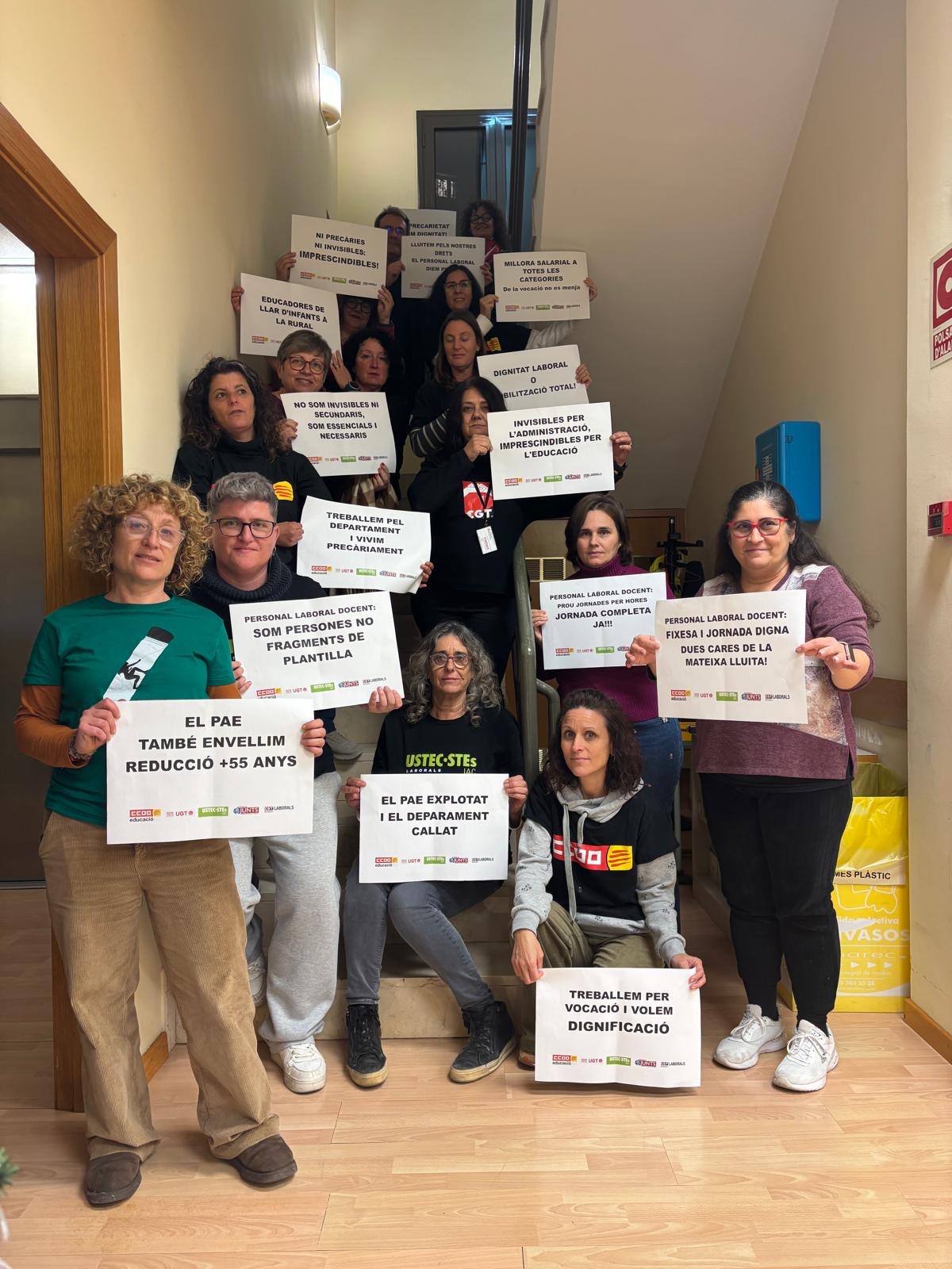 Tampoc oblidem la resta de demandes estructurals. Les delegades exigim un compromís clar de les direccions generals implicades (Direcció General de Serveis i Direcció General de Professorat) per establir una solució immediata sobre: