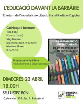 I presentarem l’Eina 539 “Rearmament o ensenyament? Els diners públics per als serveis públics”.