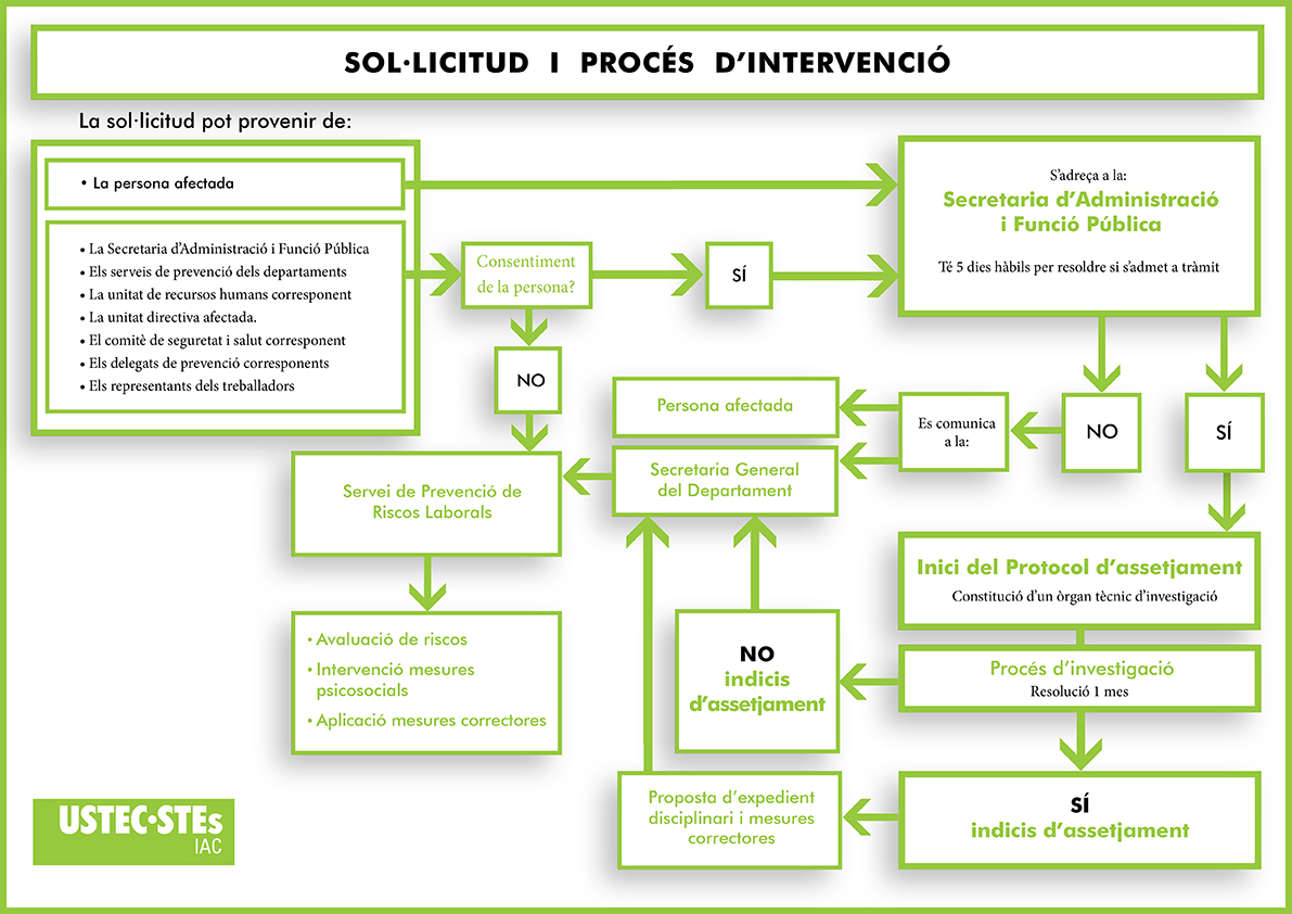 Davant d’aquesta situació tan perversa, des de la part social, i en concret des d’USTEC·STEs (IAC), hem insistit a canviar aquest protocol. La lluita i la constància dels nostres delegats i delegades a la comissió paritària de funció pública ha fet que s’hagi redactat un altre protocol, mitjançant el qual hem aconseguit majors garanties de cara a la incoació del procediment disciplinari dictaminat i que els delegats i delegades de prevenció hi tinguin més participació i capacitat de seguiment.
