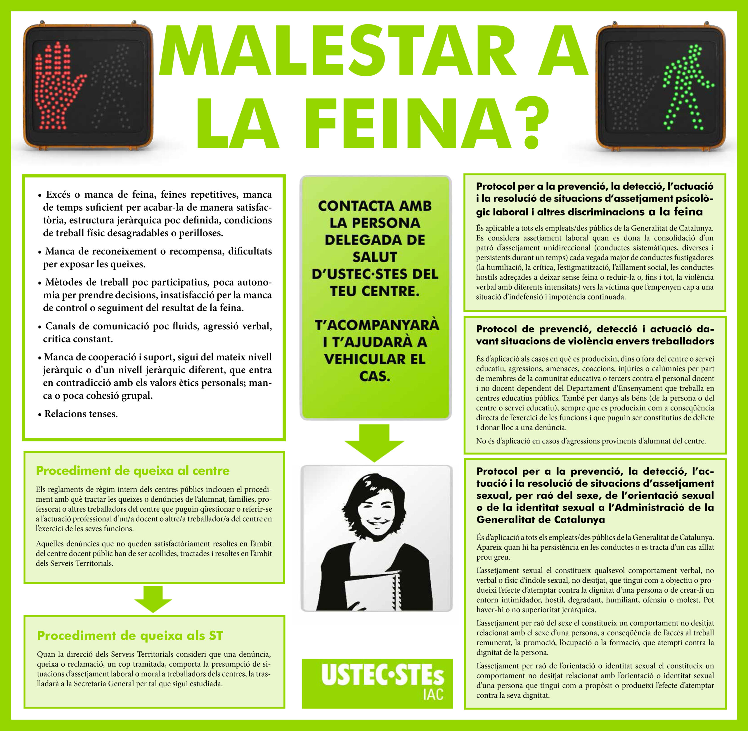 Des de la USTEC demanem un protocol de violència que contempli les agressions físiques i psicològiques de part de l’alumnat cap els treballadors/es i permeti, com fa l’aplicatiu REVA amb les agressions entre alumnat, registrar-les. Visibilitzar aquesta problemàtica ens farà conscient de la necessitat de prendre mesures efectives.