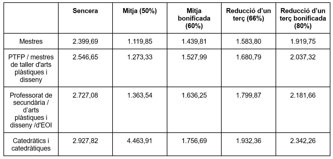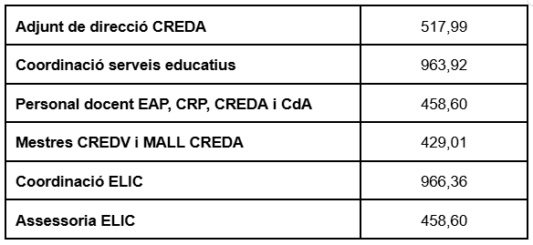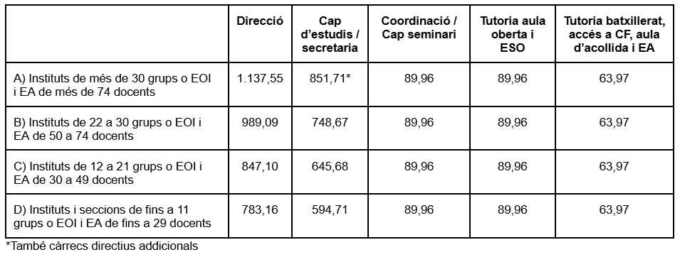 - Complements per càrrecs a instituts, escoles oficials d’idiomes (EOI), escoles d’arts i disseny (EA) i IOC