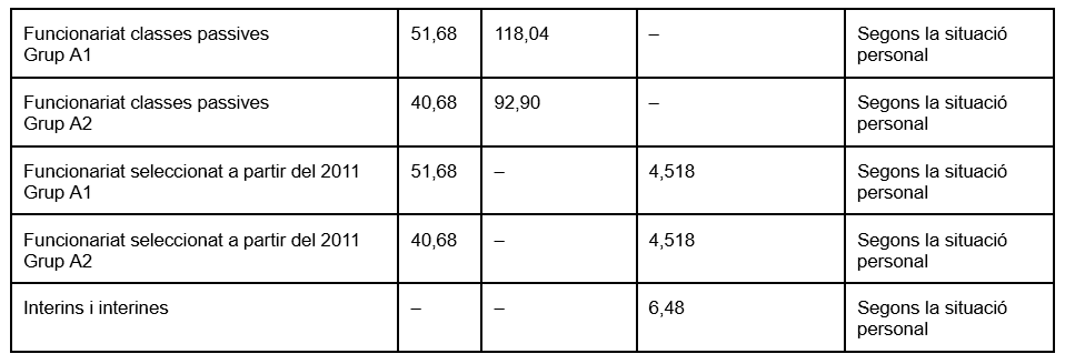 Funcionariat a partir de 2011 (cotitza per Muface (assistència sanitària) i seguretat social (jubilació): 4,518% del total, segons el següent detall: