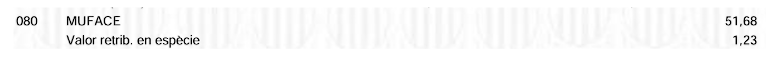 080 MUFACE: Atenció sanitària i drets passius (jubilació), són quantitats fixes mensuals, diferents per a cada grup.
